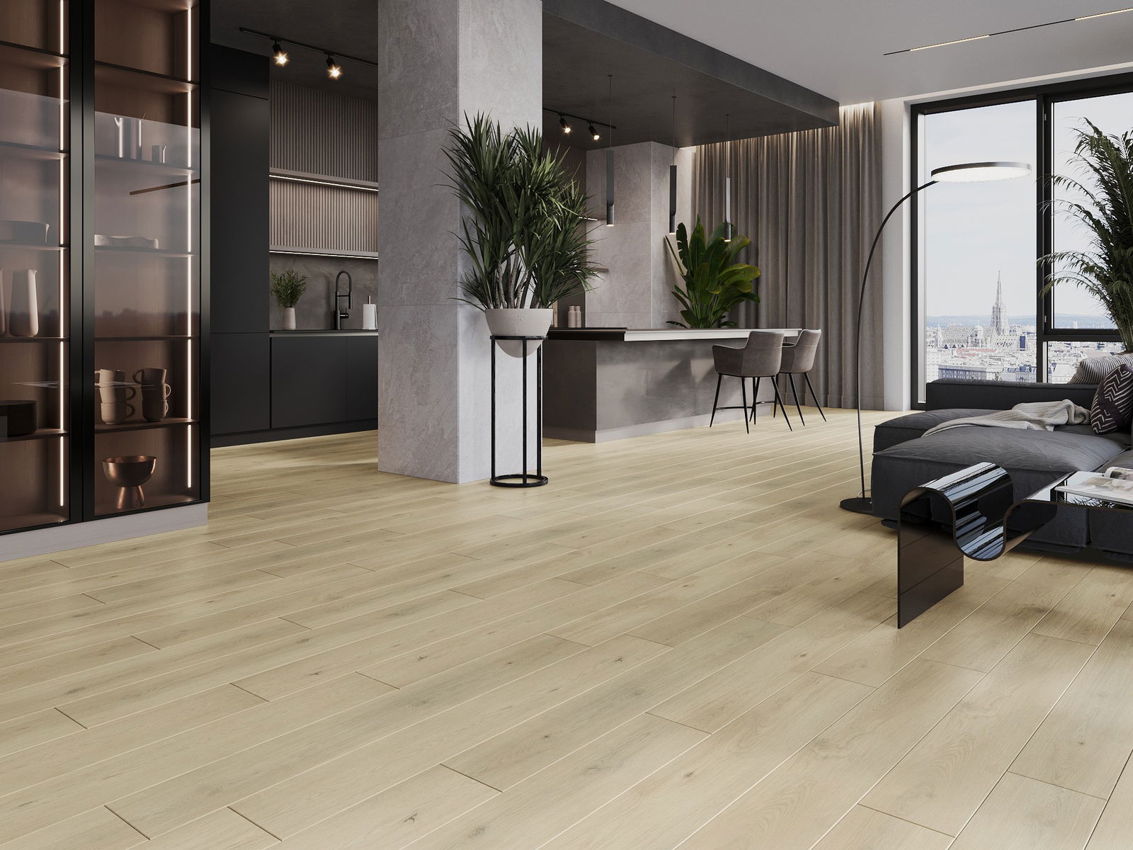 Panely majú 4-strannú škáru - každá strana bola vyfrézovaná takým spôsobom, že po položení vznikne spojenie v tvare písmena V. Tento dizajn spôsobuje, že podlaha nadobudne výraznejšiu štruktúru, čo jej dodáva hĺbku a estetický charakter. Tento efekt je obzvlášť cenený v moderných aranžmánoch, kde detaily zdôrazňujú výnimočný vzhľad interiéru.
