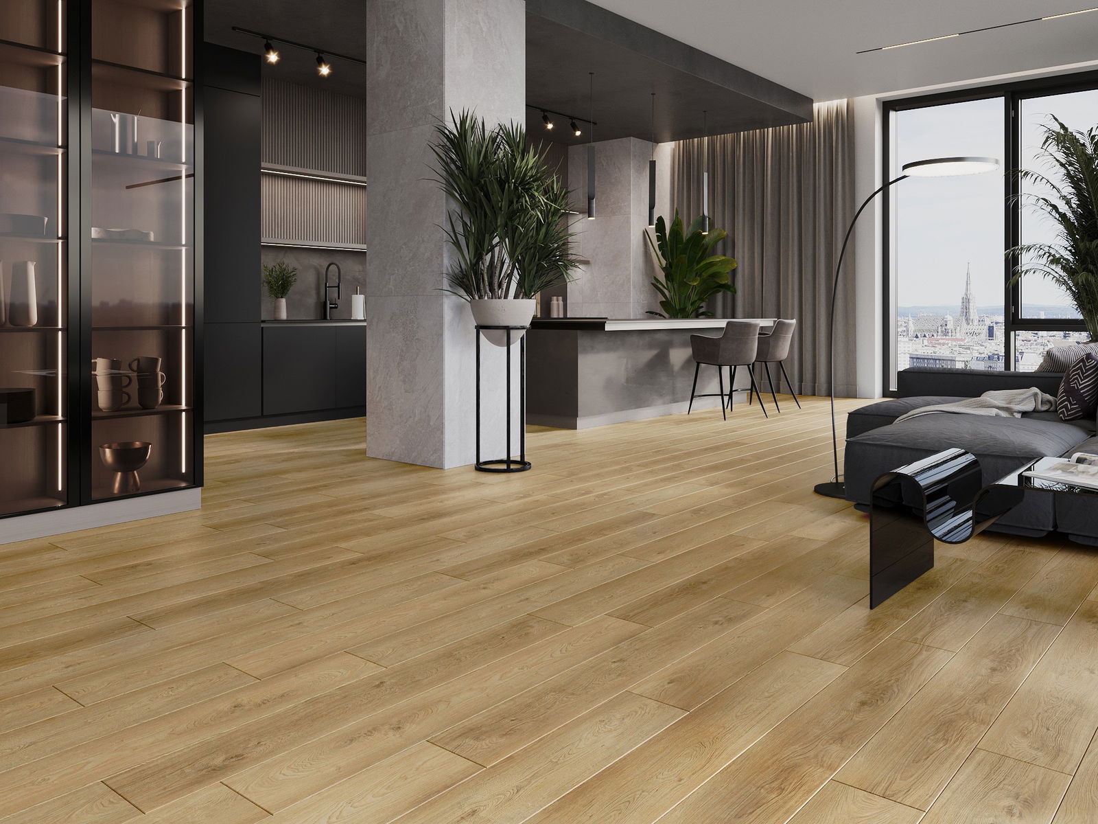 Panely majú 4-strannú škáru - každá strana bola vyfrézovaná takým spôsobom, že po položení vznikne spojenie v tvare písmena V. Tento dizajn spôsobuje, že podlaha nadobudne výraznejšiu štruktúru, čo jej dodáva hĺbku a estetický charakter. Tento efekt je obzvlášť cenený v moderných aranžmánoch, kde detaily zdôrazňujú výnimočný vzhľad interiéru.