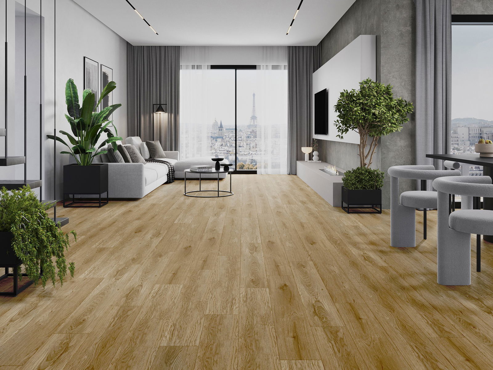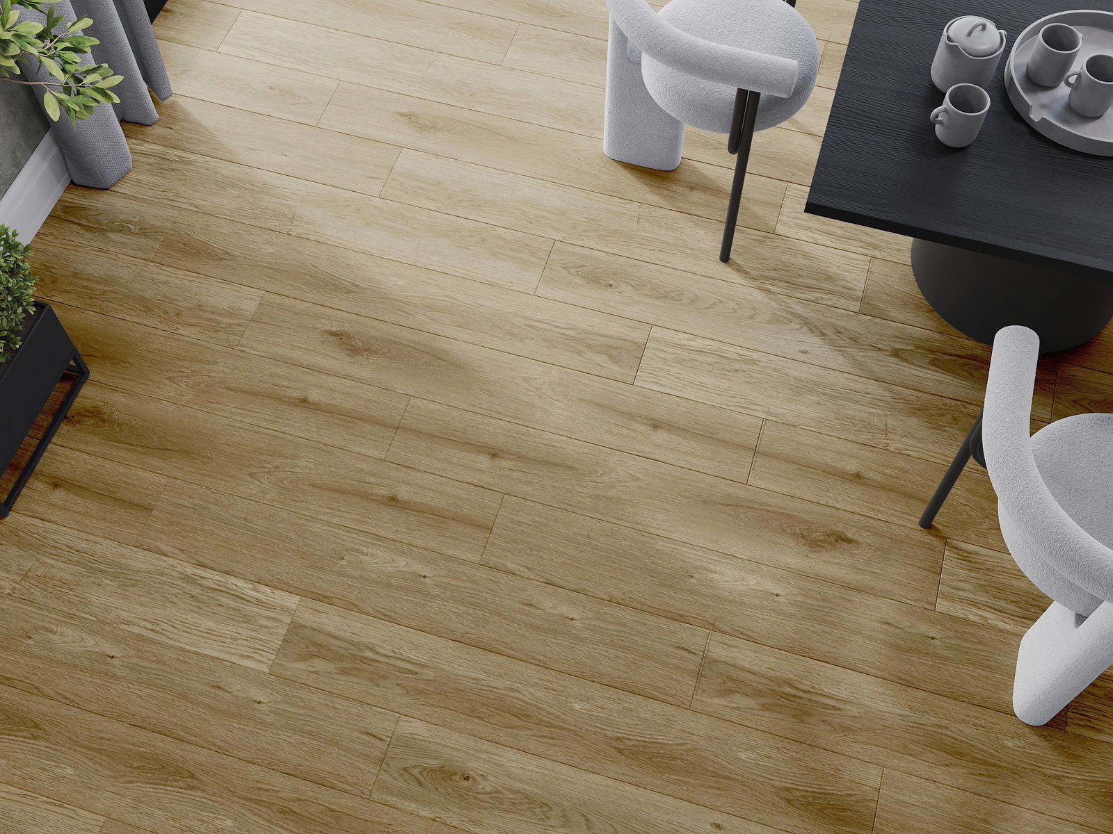 Vinylový panel s moderným dizajnom a vynikajúcimi úžitkovými vlastnosťami. Má hrúbku 6,5 mm a úžitkovú triedu 32, čo poskytuje vysokú kvalitu a trvanlivosť. Vďaka 100% vodotesnosti a odolnosti voči mechanickému poškodeniu je ideálny pre intenzívne využívané priestory. Integrovaná podložka IXPE s hrúbkou 1,5 mm a 4-stranná V-drážka umožňujú rýchlu a jednoduchú inštaláciu. Povrch uľahčuje čistenie a kompatibilita s nízkoteplotným podlahovým kúrením pridáva funkčnosť.