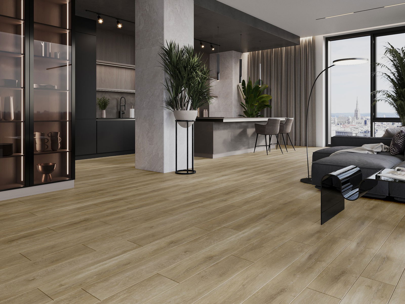 Panely majú 4-strannú škáru - každá strana bola vyfrézovaná takým spôsobom, že po položení vznikne spojenie v tvare písmena V. Tento dizajn spôsobuje, že podlaha nadobudne výraznejšiu štruktúru, čo jej dodáva hĺbku a estetický charakter. Tento efekt je obzvlášť cenený v moderných aranžmánoch, kde detaily zdôrazňujú výnimočný vzhľad interiéru.