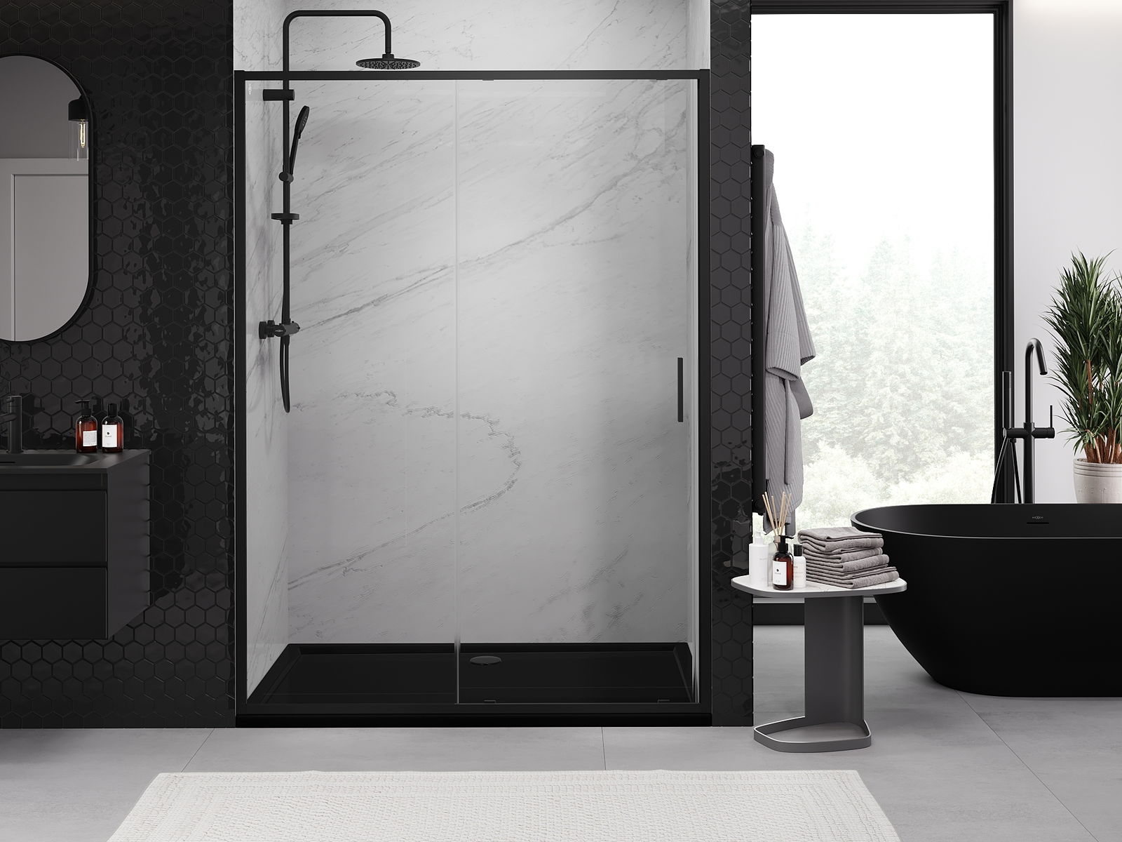 Posuvné dvere sa pohybujú po špeciálnych koľajniciach a nevyžadujú dodatočný priestor na otvorenie, preto sú ideálne pre menšie kúpeľne. Vďaka dvojitým kolieskam s kovovým telom je ich pohyb plynulý.