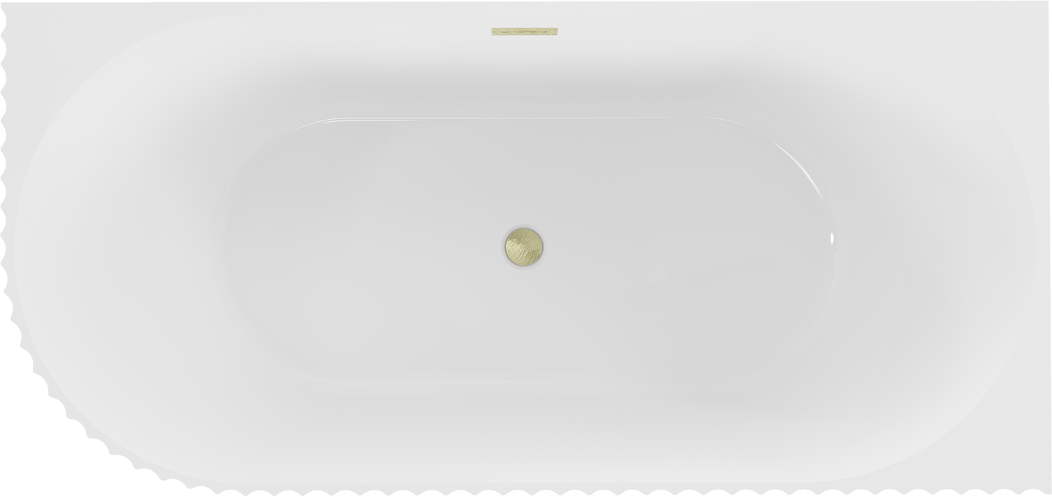 Mexen Gia voľne stojaca, rohová, ryhovaná vaňa pravá 150 x 75 cm, biely lesk, prepad zlatý leštený - 52701507500P-55