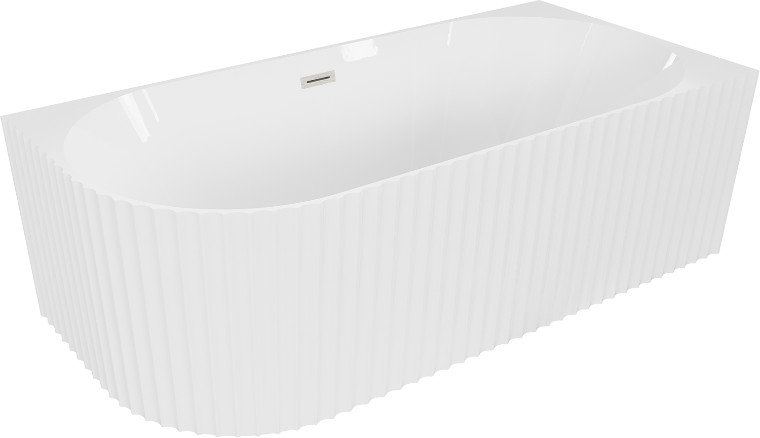 Mexen Gia voľne stojaca rohová ryhovaná vaňa pravá 150 x 75 cm, biela lesklá, prepad brúsený nikel - 52701507500P-97