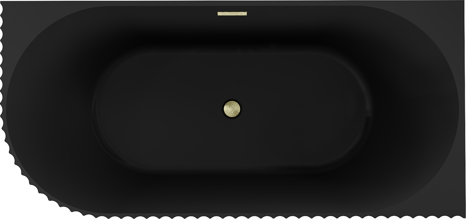 Mexen Gia voľne stojaca rohová vaňa s drážkami pravá 150 x 75 cm, čierna matná, zlatý brúsený prepad - 52701507571P-55