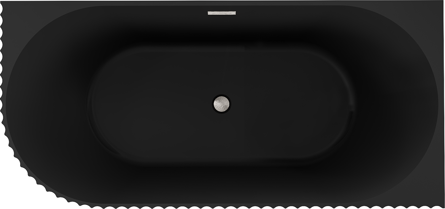 Mexen Gia voľne stojaca rohová vaňa s ryhami pravá 150 x 75 cm, čierny mat, prepad brúsený nikel - 52701507571P-97