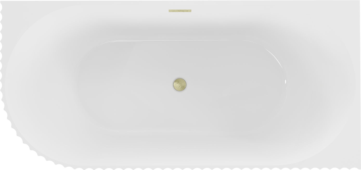 Mexen Gia rohová samostatne stojaca vaňa s drážkami pravá 170 x 80 cm, biely lesk, prepad zlatý kartáčovaný - 52701708000P-55