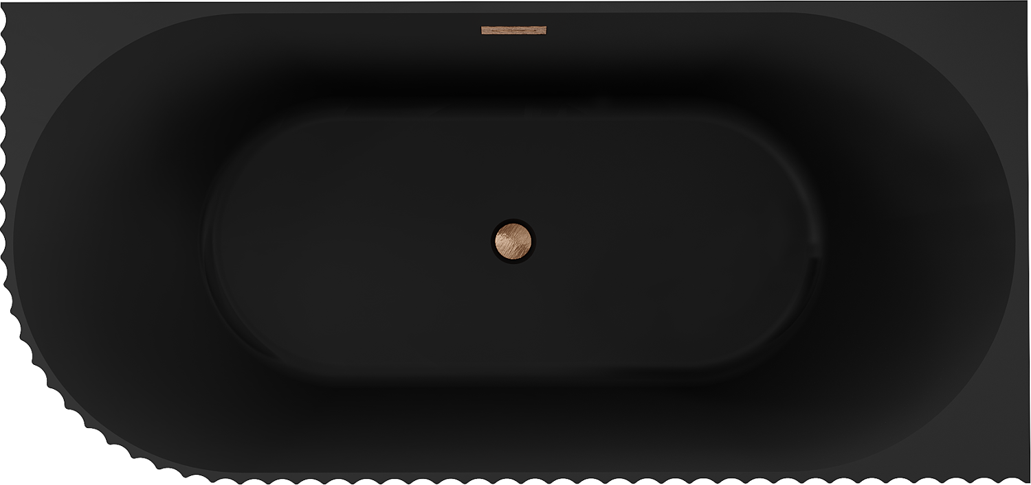 Mexen Gia voľne stojaca rohová ryhovaná vaňa pravá 170 x 80 cm, čierna mat, prepad brúsená meď - 52701708071P-65