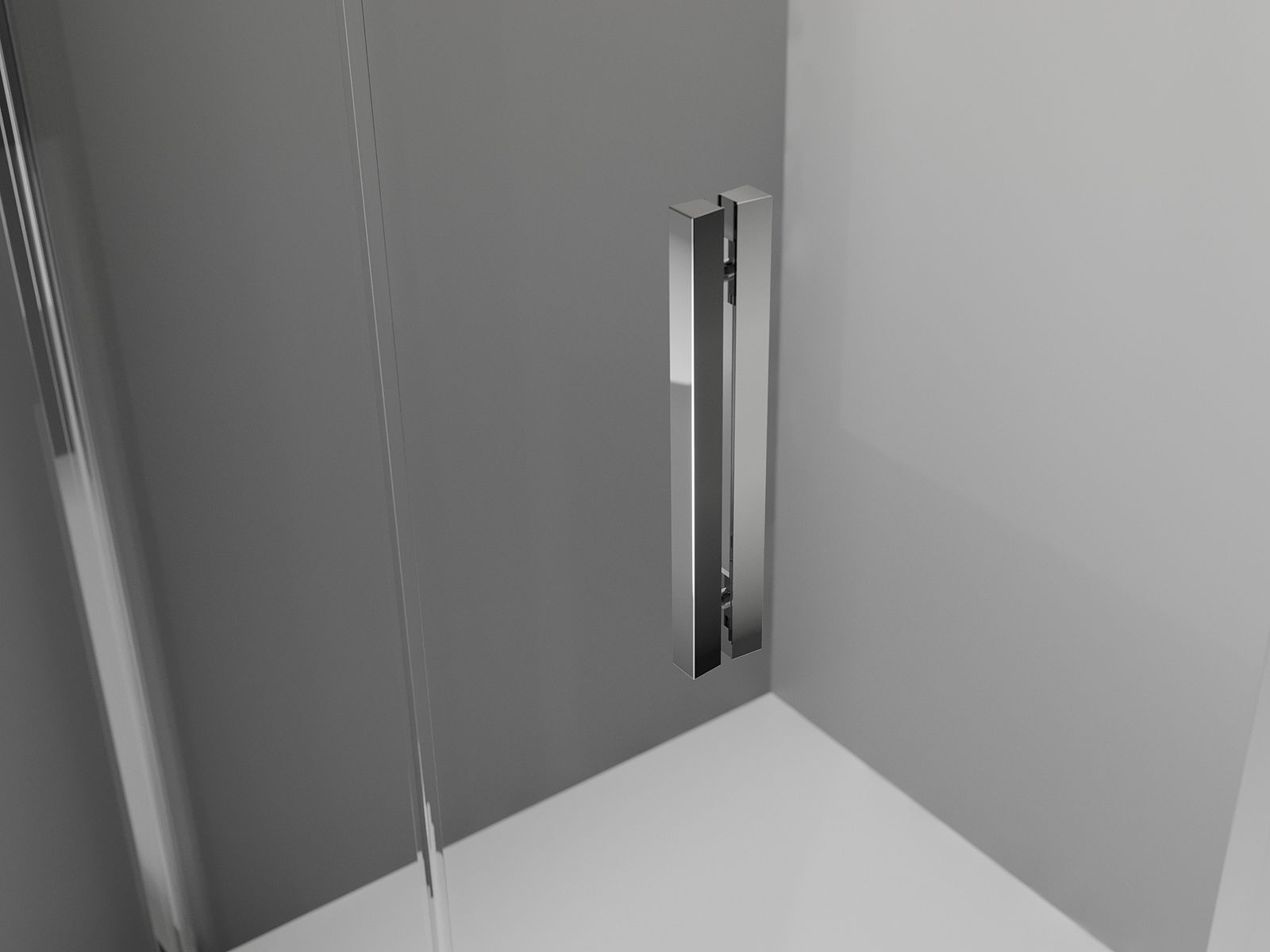 Praktická a pohodlná rukoväť je vyrobená z odolného a pevného kovu. Moderný tvar v kombinácii s povrchovou úpravou prispôsobenou farbe profilov dodáva celku moderný a štýlový vzhľad, zdôrazňujúc estetiku každej kúpeľne.