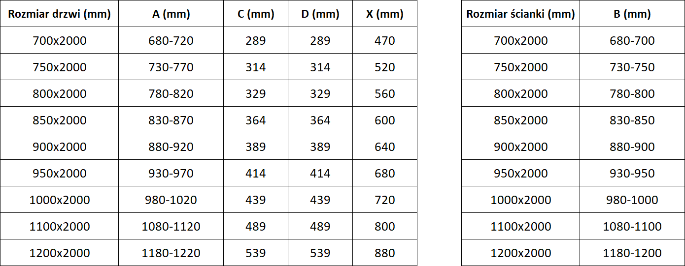 Veľkosť: 85x95 cm (dvere 85 cm, stena 95 cm)