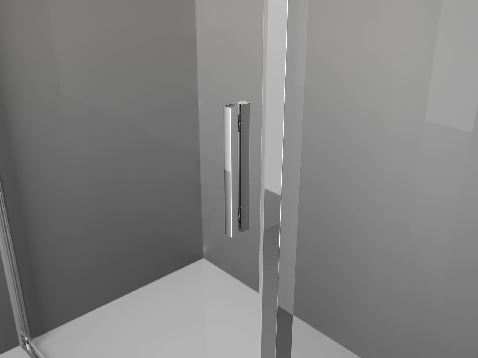 Praktická a pohodlná rukoväť je vyrobená z odolného a pevného kovu. Moderný tvar v kombinácii s povrchovou úpravou prispôsobenou farbe profilov dodáva celku moderný a štýlový vzhľad, zdôrazňujúc estetiku každej kúpeľne.