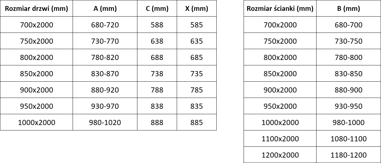 Rozmery: 75x100 cm (dvere 75 cm, stena 100 cm)