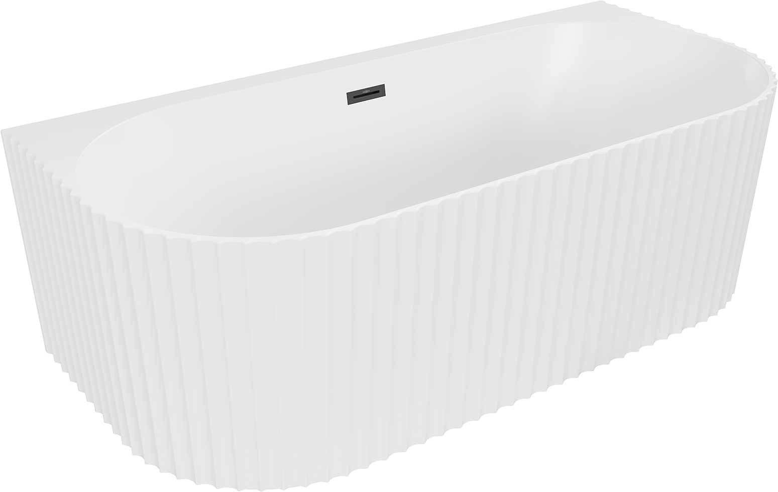 Mexen Sella voľne stojaca pri stene rebrovaná vaňa 150 x 75 cm, biela matná, čierny prepad - 52711507501-70