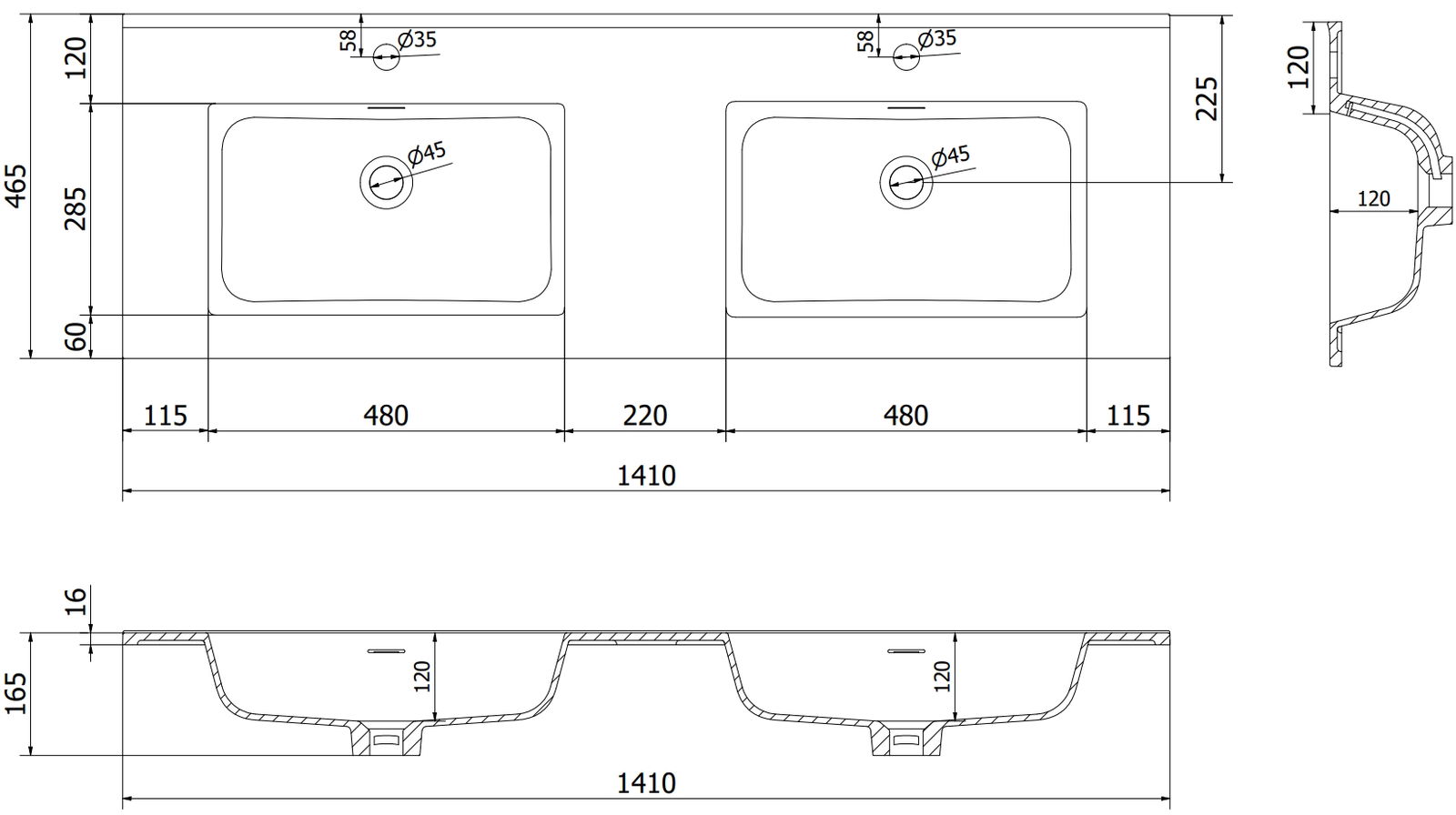Mexen Otis umývadlo zapustené do dosky dvojité 141 x 46,5 cm, biela lesk - 25181400D