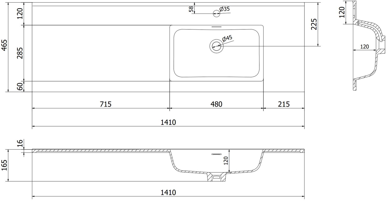 Produkt bol vyrobený z konglomerátu. Vyznačuje sa hladkým povrchom a vysokou odolnosťou voči mechanickému poškodeniu a vzniku škrabancov. Trvalé riešenie, ktoré si zachováva estetický vzhľad počas mnohých rokov používania.