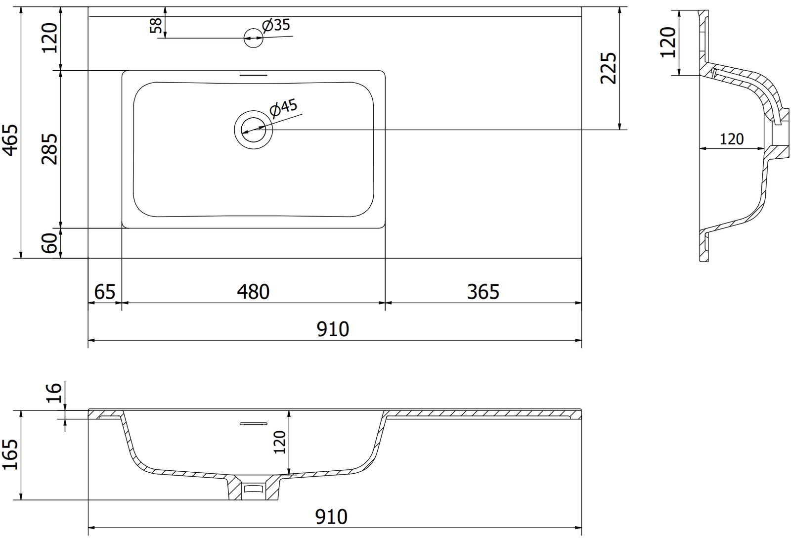 Prepadový otvor sa nazýva "bezpečnostný otvor". Cez neho odchádza prebytočná voda, vďaka čomu sa voda nedostane cez okraj produktu, keď je dolný odtok uzavretý. Je to veľmi bezpečné a praktické riešenie.