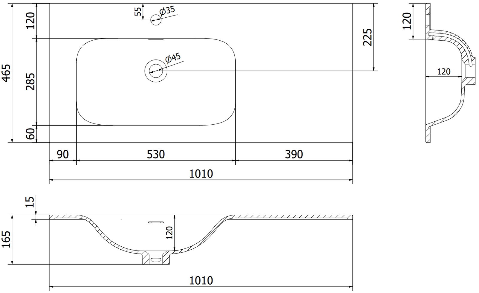 Prepadový otvor sa nazýva "bezpečnostný otvor". Cez neho odchádza prebytočná voda, vďaka čomu sa voda nedostane cez okraj produktu, keď je dolný odtok uzavretý. Je to veľmi bezpečné a praktické riešenie.