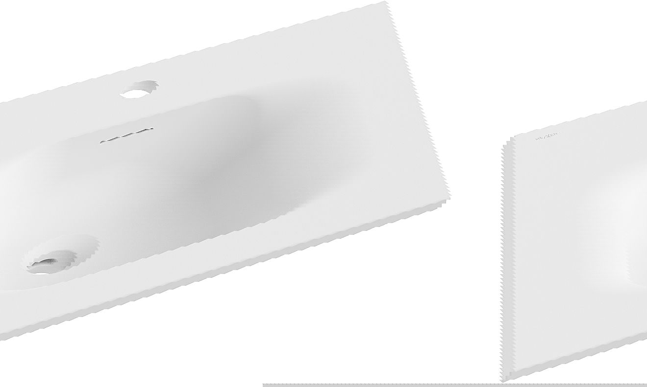 Umývadlo má otvor, do ktorého môžeme nainštalovať batériu. To umožňuje ušetriť cenný priestor v kúpeľni a zdôrazniť jej estetiky. Toto riešenie tiež umožňuje jednoduchšie udržiavanie čistoty okolo umývadla.