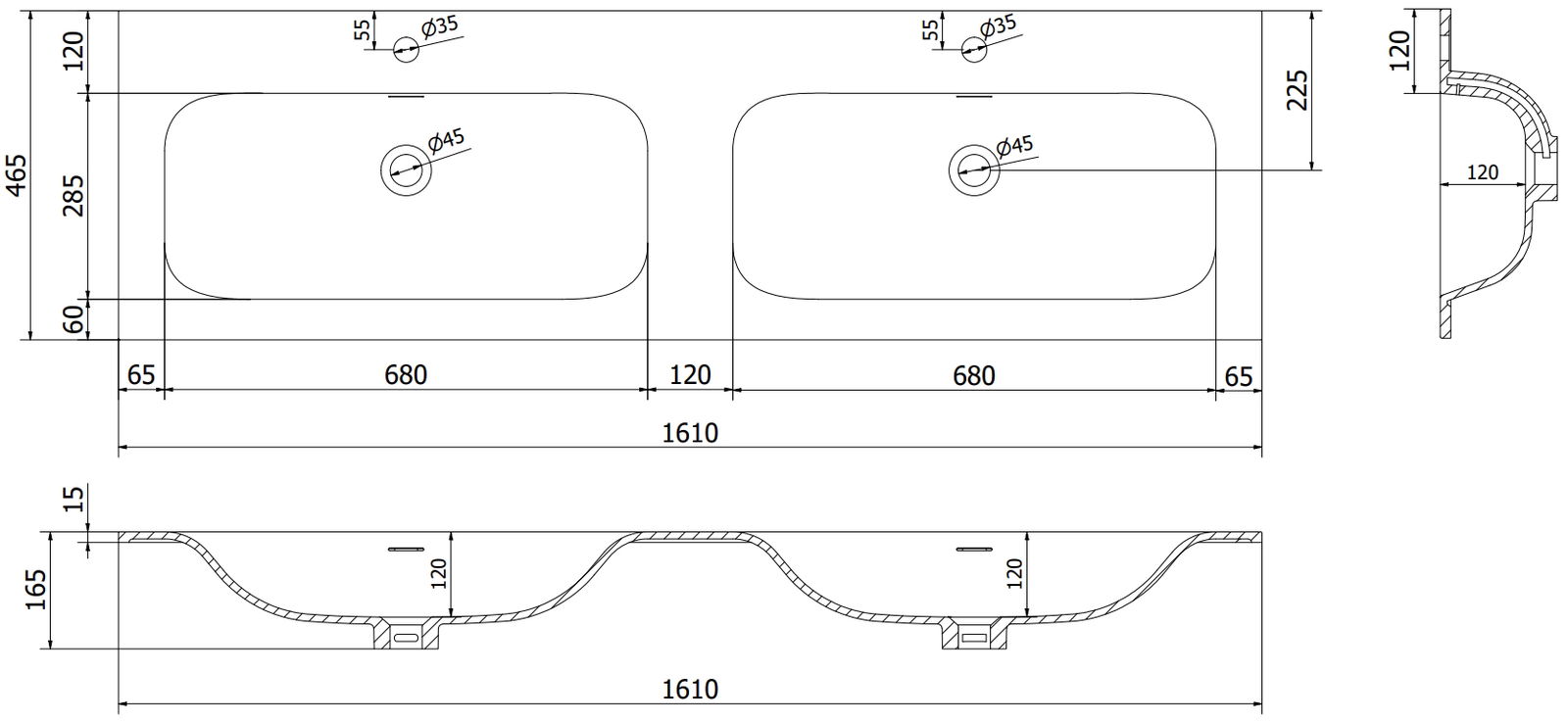 Mexen Vela umývadlo zapustené do dosky dvojité 161 x 46,5 cm, biela matná - 25231601D
