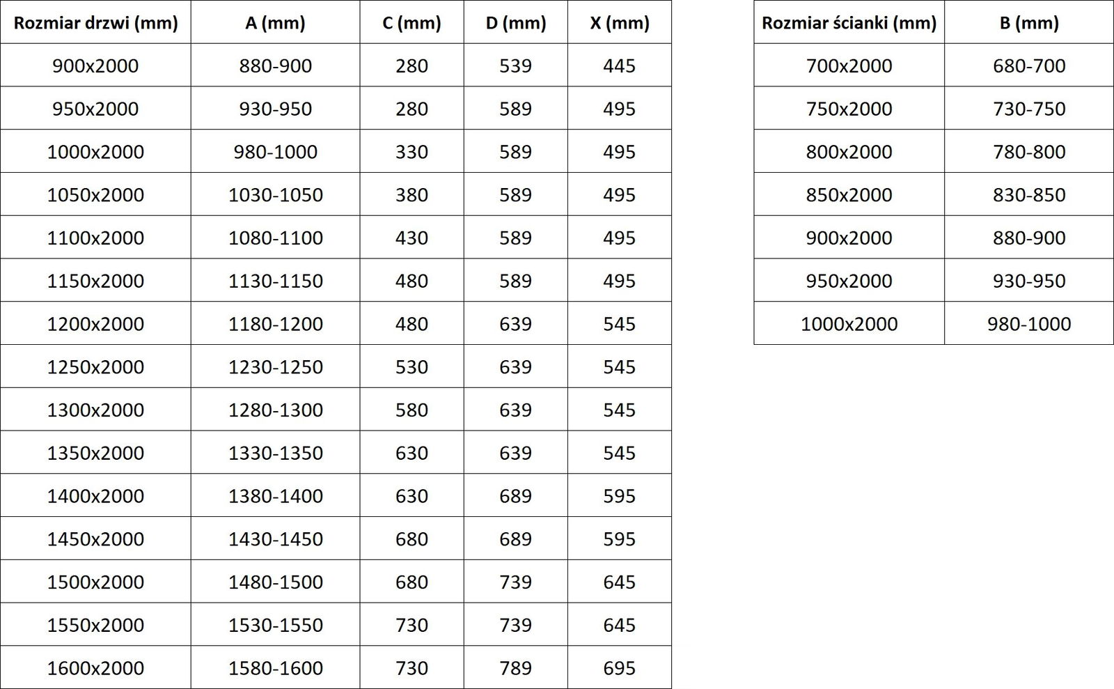 Veľkosť: 130x90 cm (dvere 130 cm, stena 90 cm)