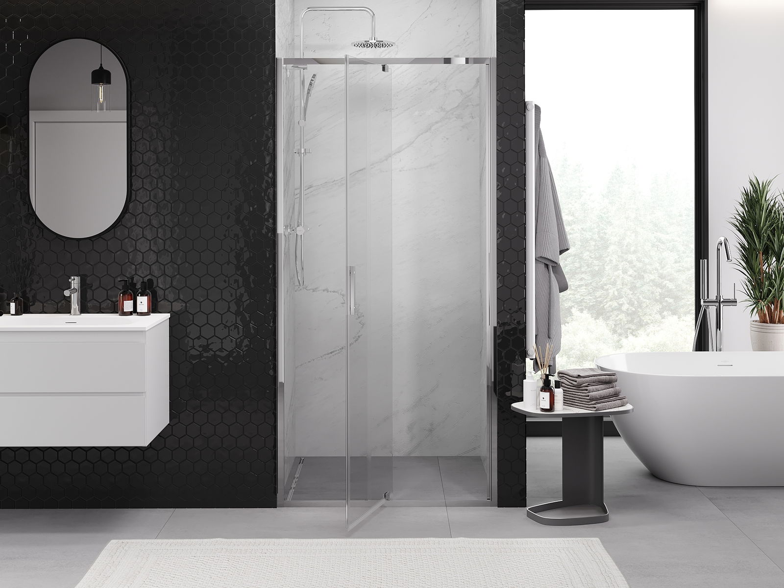 Vďaka použitiu univerzálneho systému montáže môžu byť sprchové dvere namontované na pravú alebo ľavú stranu podľa potreby. Vďaka tomu môžete ľahko naprojektovať sprchu prispôsobenú priestoru kúpeľne.