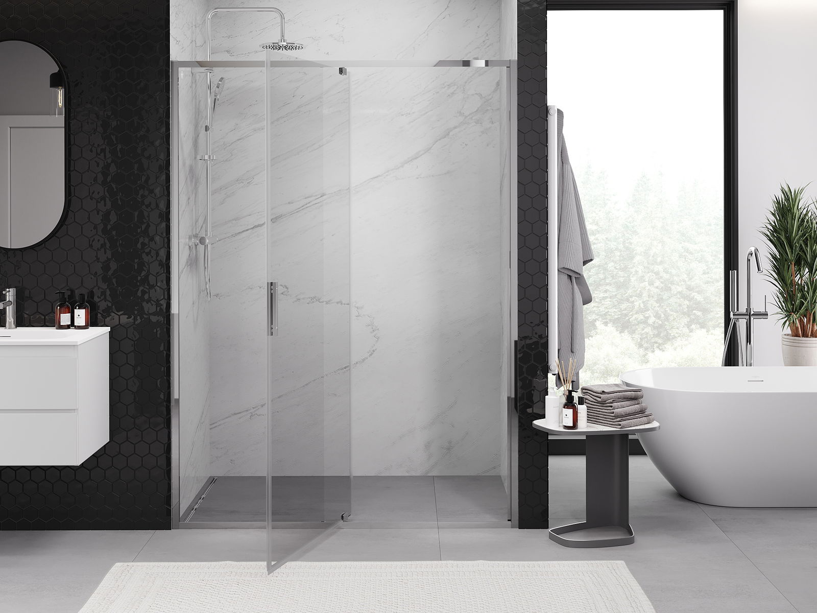 Vďaka použitiu univerzálneho systému montáže môžu byť sprchové dvere namontované na pravú alebo ľavú stranu podľa potreby. Vďaka tomu môžete ľahko naprojektovať sprchu prispôsobenú priestoru kúpeľne.
