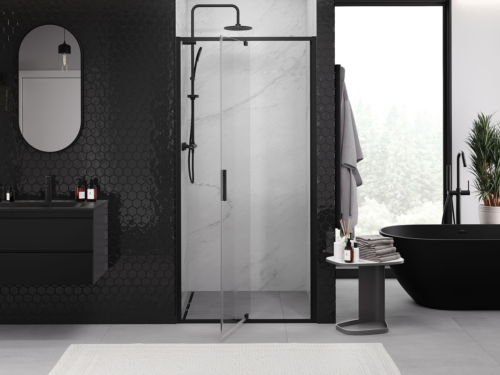 Mexen Exo sprchové dvere, otváracie 125 cm, priehľadné, čierne - 819-125-000-70-00