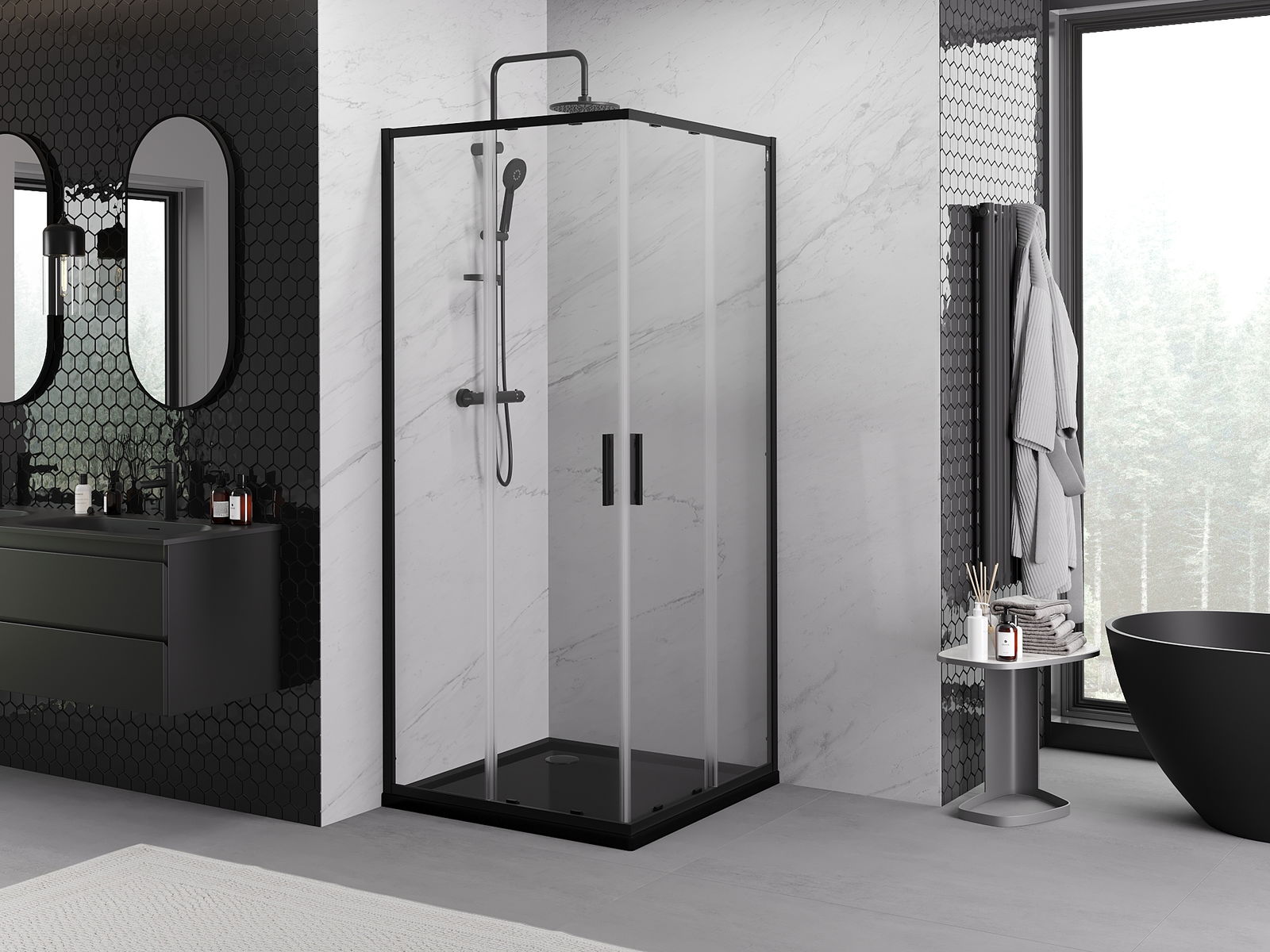 Mexen Exo štvorcový sprchový kút posuvný 90 x 90 cm, transparentný, čierny - 8111-090-090-70-00