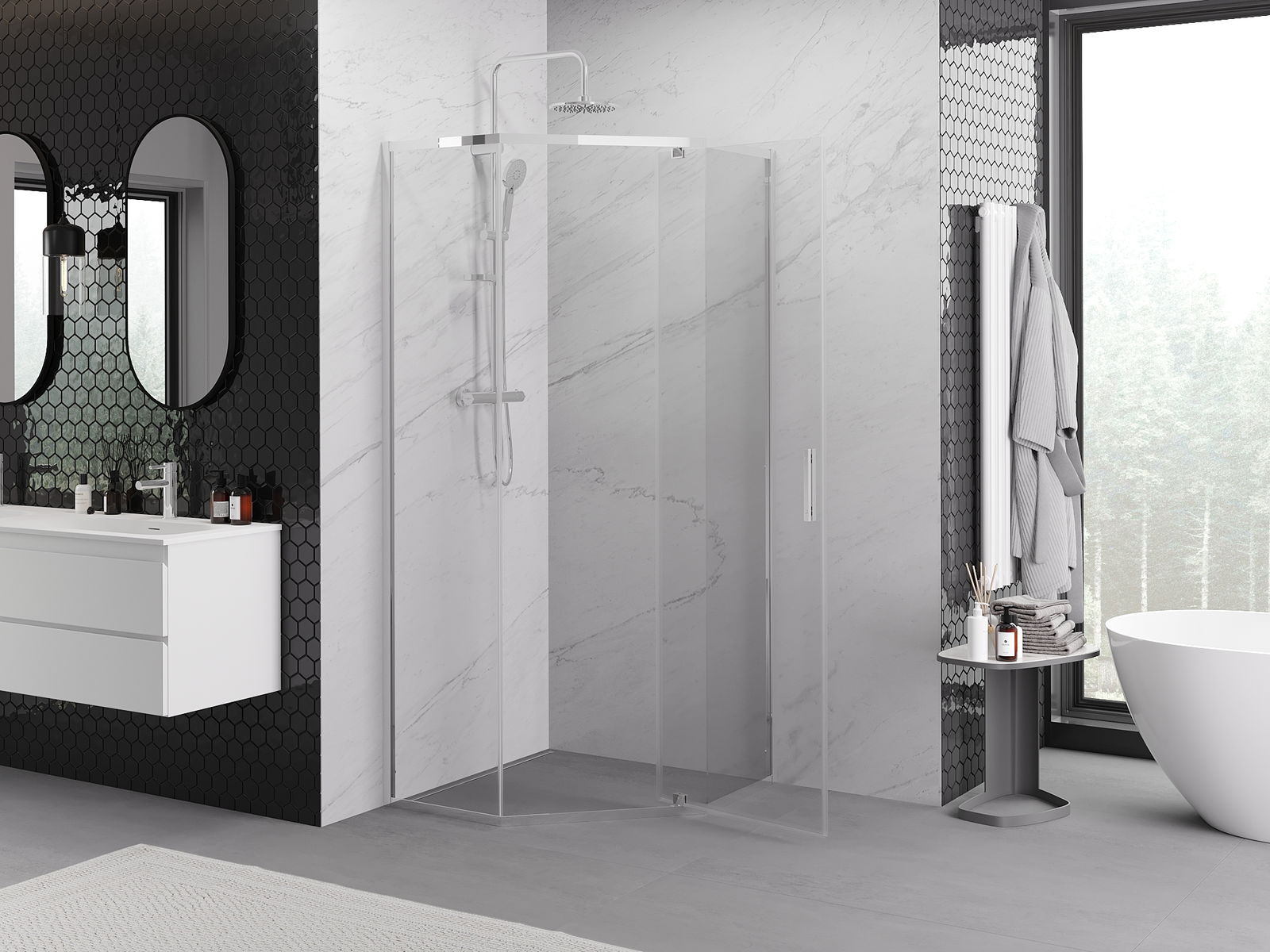 Produkt je možné podľa potreby namontovať ako na sprchovej vaničke, tak aj priamo na podlahe. Univerzálny spôsob montáže umožňuje prispôsobiť produkt rôznym typom kúpeľní a konfiguráciám priestoru.