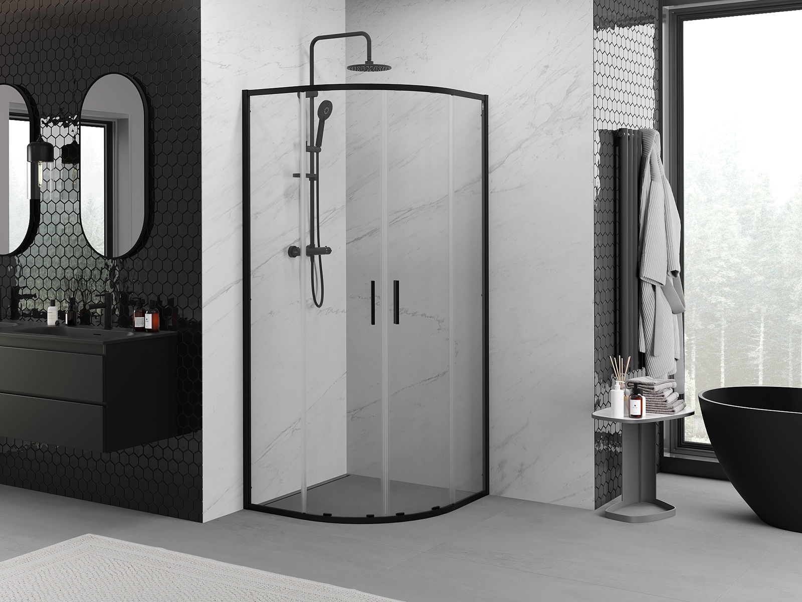 Mexen Exo sprchová kabína polkruhová posuvná 100 x 100 cm, transparentná, čierna - 8132-100-100-70-00