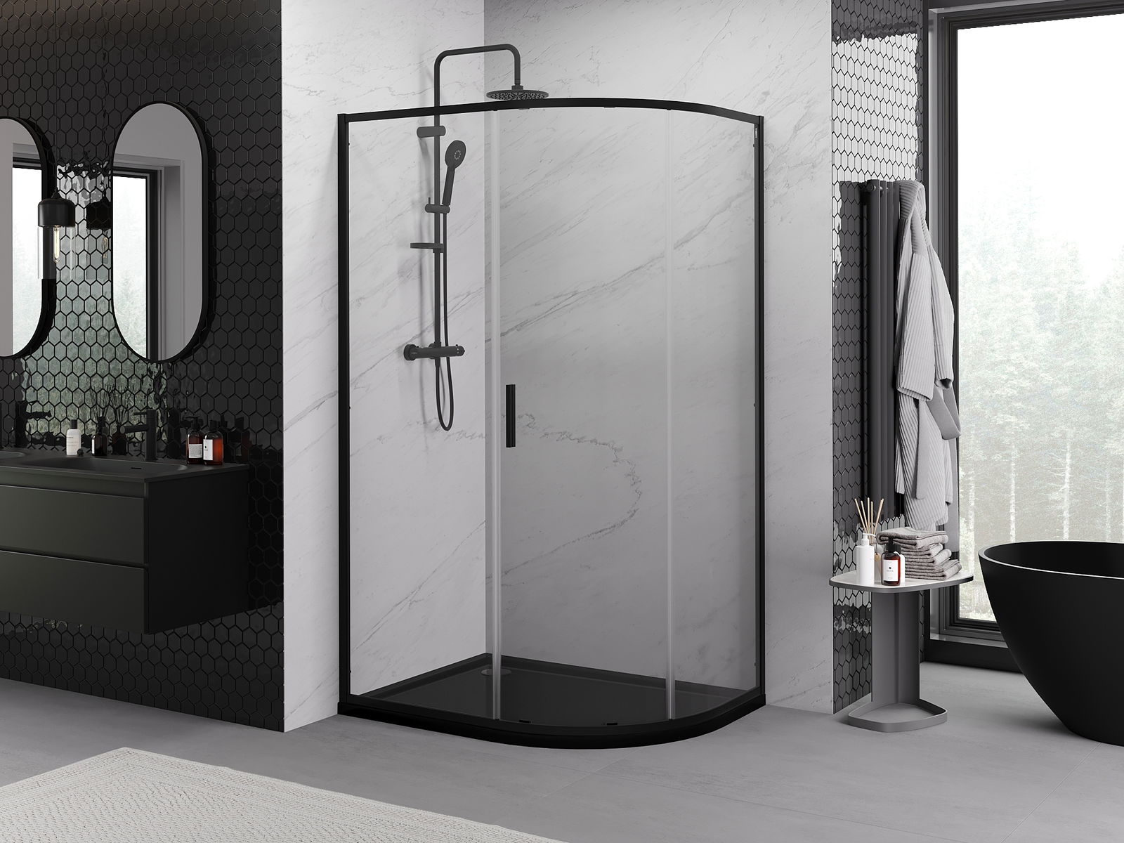 Mexen Exo sprchová kabína štvrťkruhová asymetrická posuvná 100 x 80 cm, transparentná, čierna - 8131-100-080-70-00