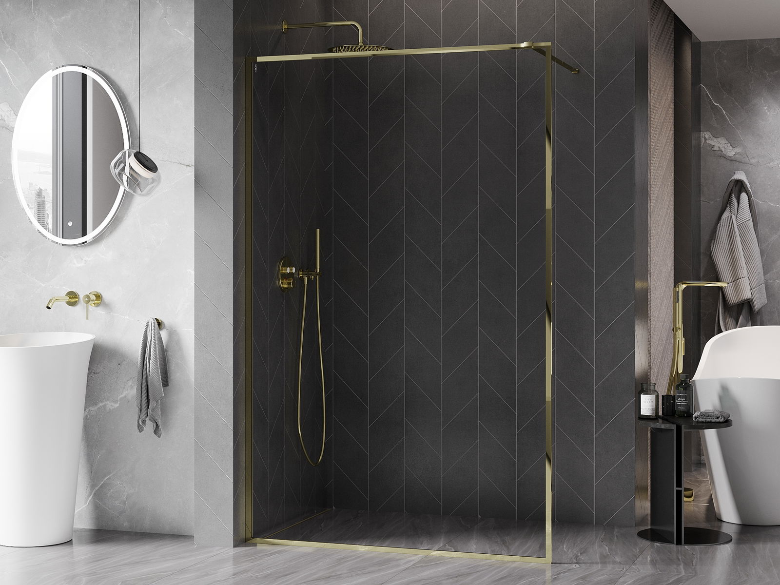 Mexen Kioto-F sprchová stena Walk-in s rámom 130 x 202 cm, priehľadná 8 mm, zlatá - 800-130-104-50-00