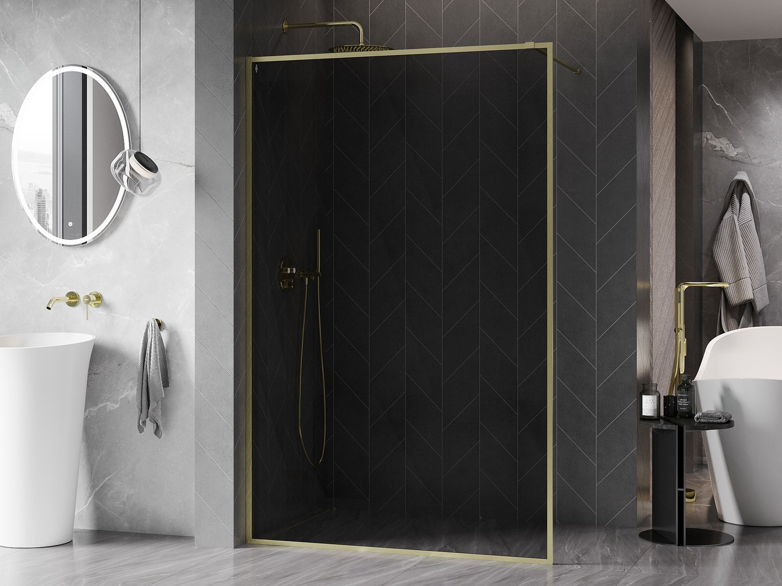 Mexen Kioto-F sprchová stena Walk-in s rámom 100 x 202 cm, grafit 8 mm, zlatá brúsená - 800-100-104-55-40