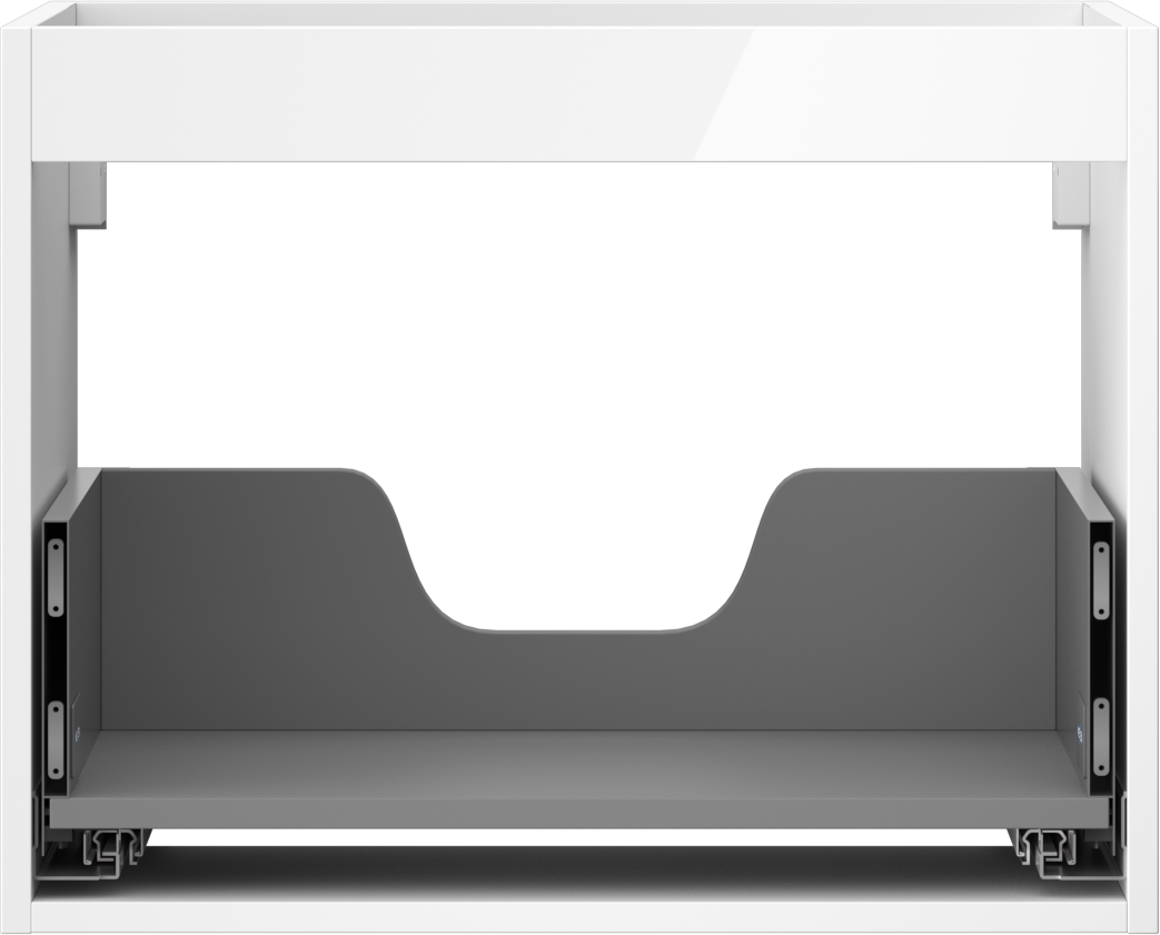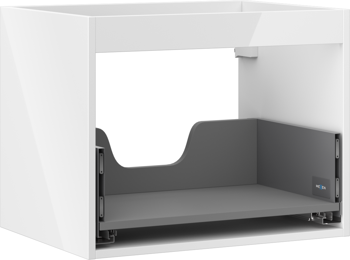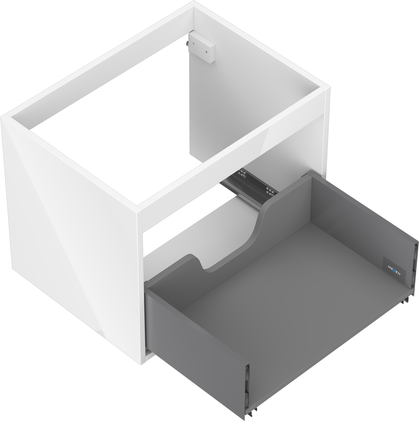 Výrez v zásuvke je navrhnutý tak, aby pojal sifón, ktorý je nevyhnutný v umývadlových inštaláciách. Vďaka tomu môže byť nábytok namontovaný plne funkčne, bez nutnosti vzdávať sa priestoru v zásuvke v prospech inštalácie.