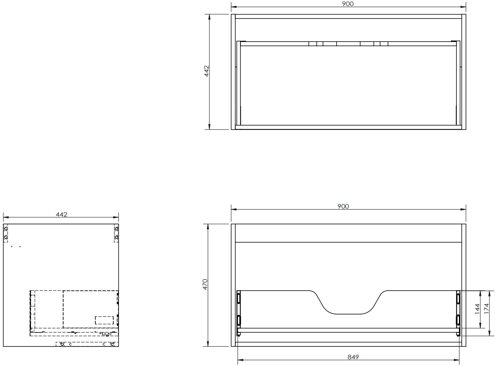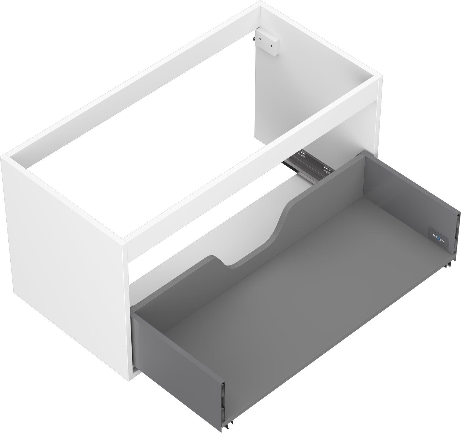 Výrez v zásuvke je navrhnutý tak, aby pojal sifón, ktorý je nevyhnutný v umývadlových inštaláciách. Vďaka tomu môže byť nábytok namontovaný plne funkčne, bez nutnosti vzdávať sa priestoru v zásuvke v prospech inštalácie.
