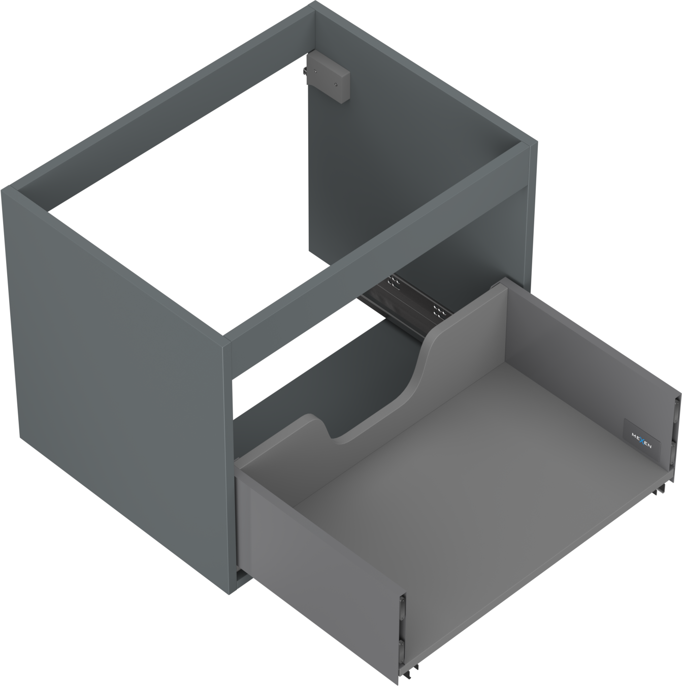 Výrez v zásuvke je navrhnutý tak, aby pojal sifón, ktorý je nevyhnutný v umývadlových inštaláciách. Vďaka tomu môže byť nábytok namontovaný plne funkčne, bez nutnosti vzdávať sa priestoru v zásuvke v prospech inštalácie.