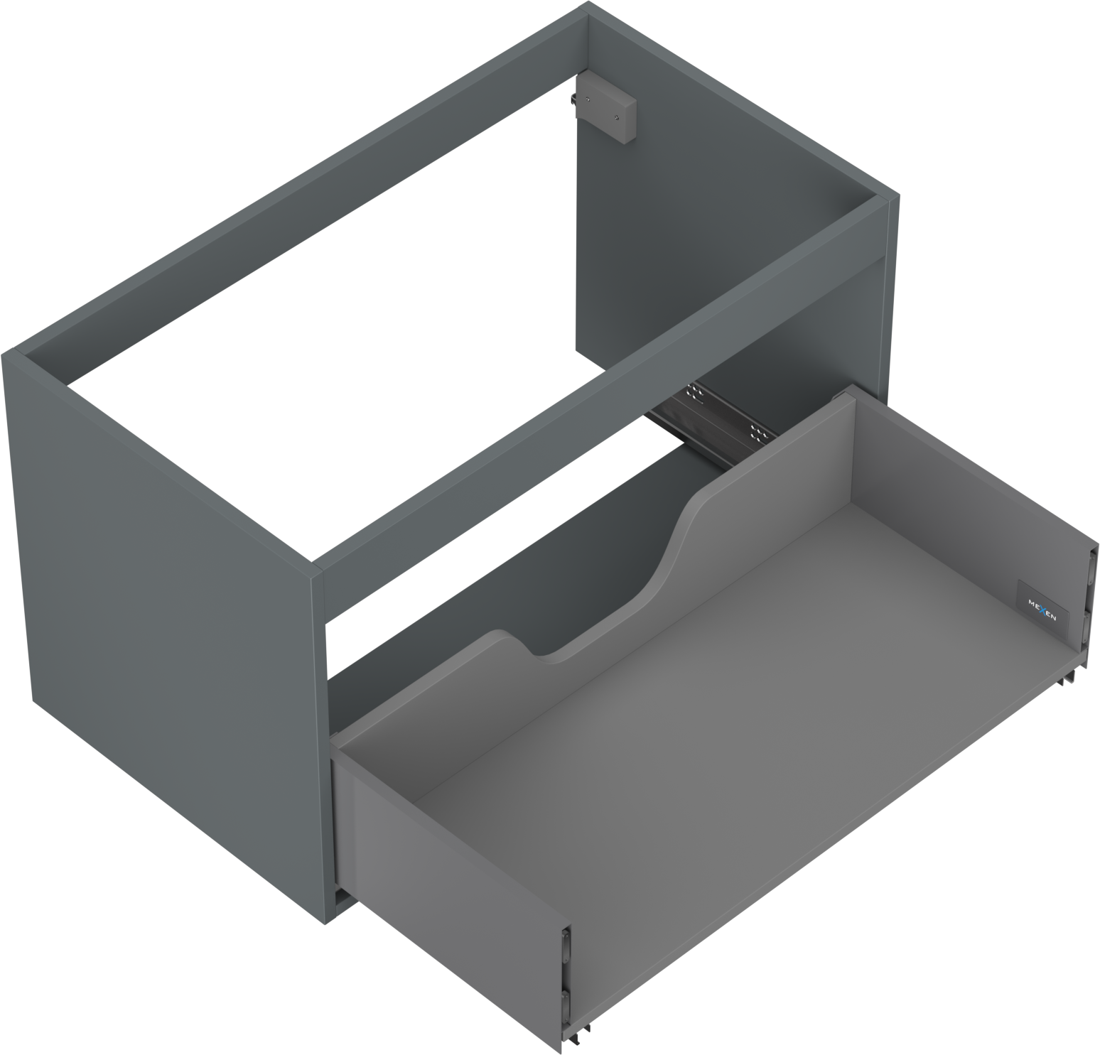 Výrez v zásuvke je navrhnutý tak, aby pojal sifón, ktorý je nevyhnutný v umývadlových inštaláciách. Vďaka tomu môže byť nábytok namontovaný plne funkčne, bez nutnosti vzdávať sa priestoru v zásuvke v prospech inštalácie.