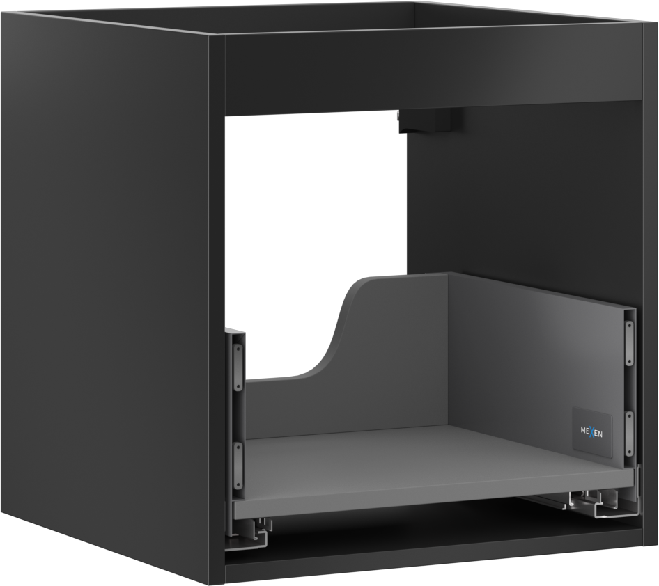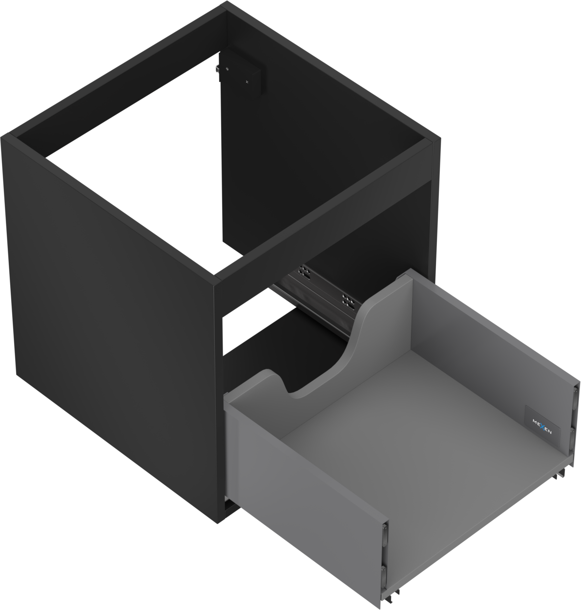 Výrez v zásuvke je navrhnutý tak, aby pojal sifón, ktorý je nevyhnutný v umývadlových inštaláciách. Vďaka tomu môže byť nábytok namontovaný plne funkčne, bez nutnosti vzdávať sa priestoru v zásuvke v prospech inštalácie.