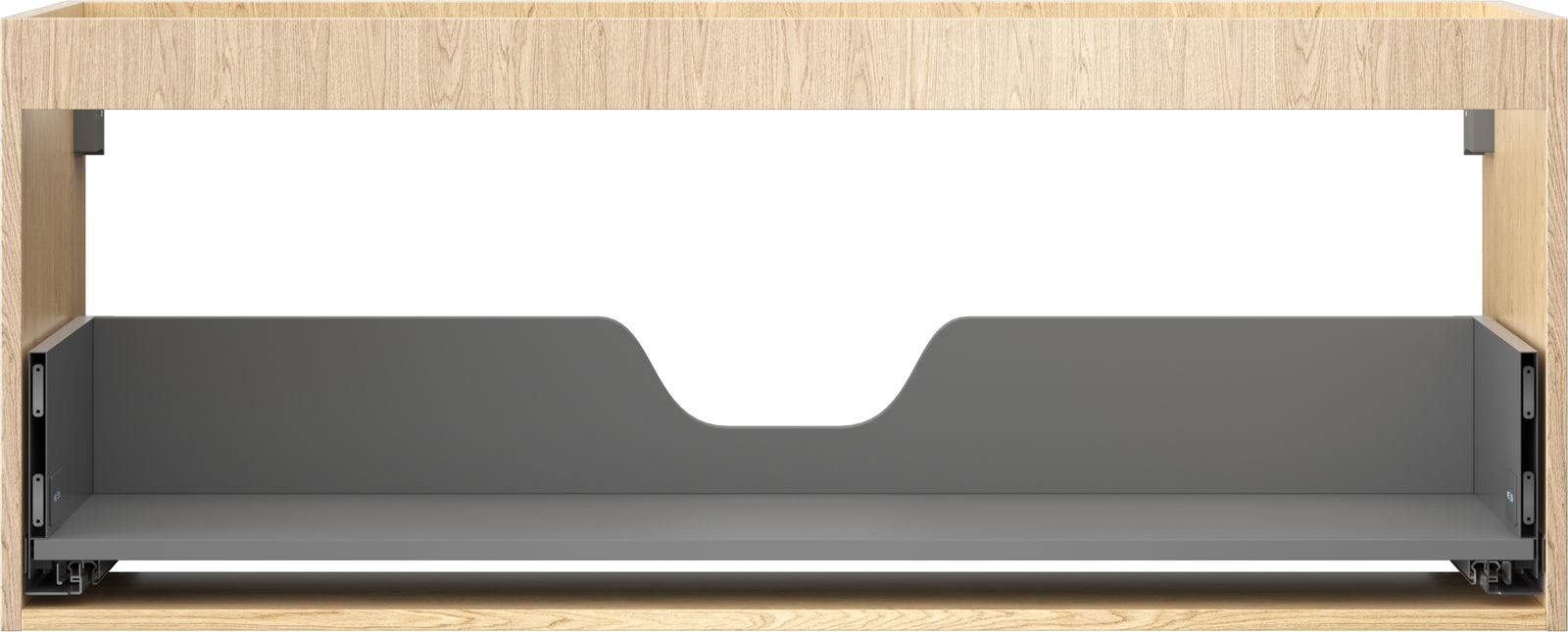 Výrez v zásuvke je navrhnutý tak, aby pojal sifón, ktorý je nevyhnutný v umývadlových inštaláciách. Vďaka tomu môže byť nábytok namontovaný plne funkčne, bez nutnosti vzdávať sa priestoru v zásuvke v prospech inštalácie.