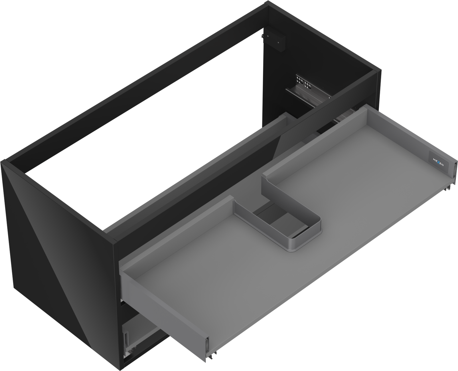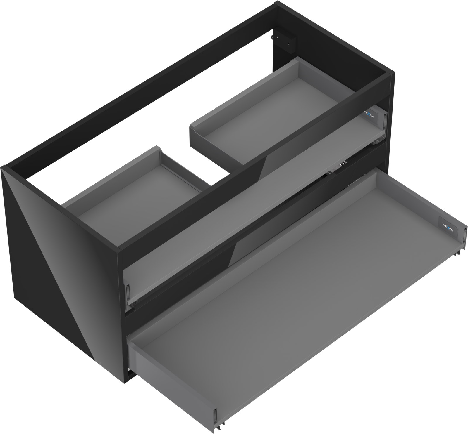 Výrez v zásuvke je navrhnutý tak, aby pojal sifón, ktorý je nevyhnutný v umývadlových inštaláciách. Vďaka tomu môže byť nábytok namontovaný plne funkčne, bez nutnosti vzdávať sa priestoru v zásuvke v prospech inštalácie.