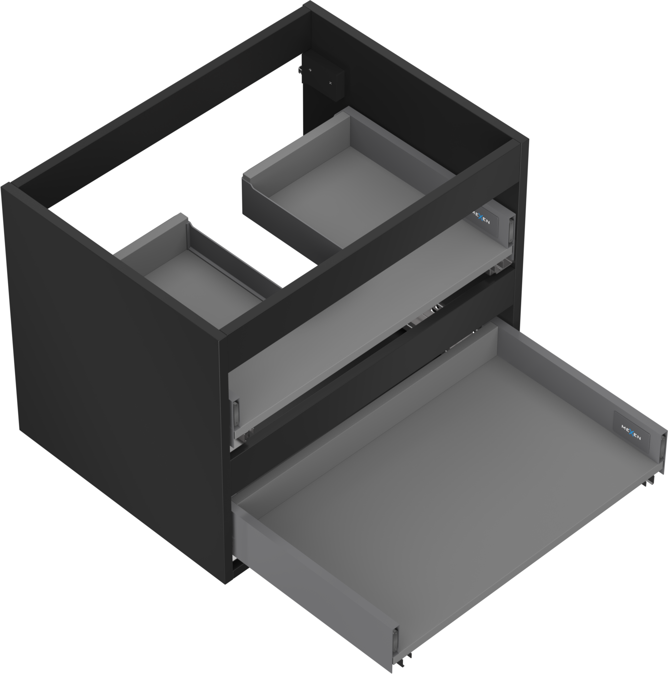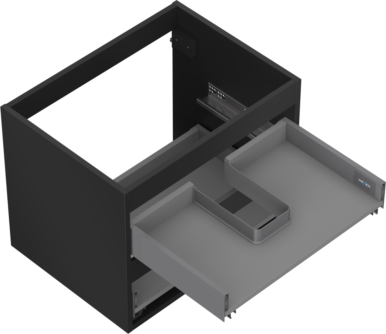 Výrez v zásuvke je navrhnutý tak, aby pojal sifón, ktorý je nevyhnutný v umývadlových inštaláciách. Vďaka tomu môže byť nábytok namontovaný plne funkčne, bez nutnosti vzdávať sa priestoru v zásuvke v prospech inštalácie.