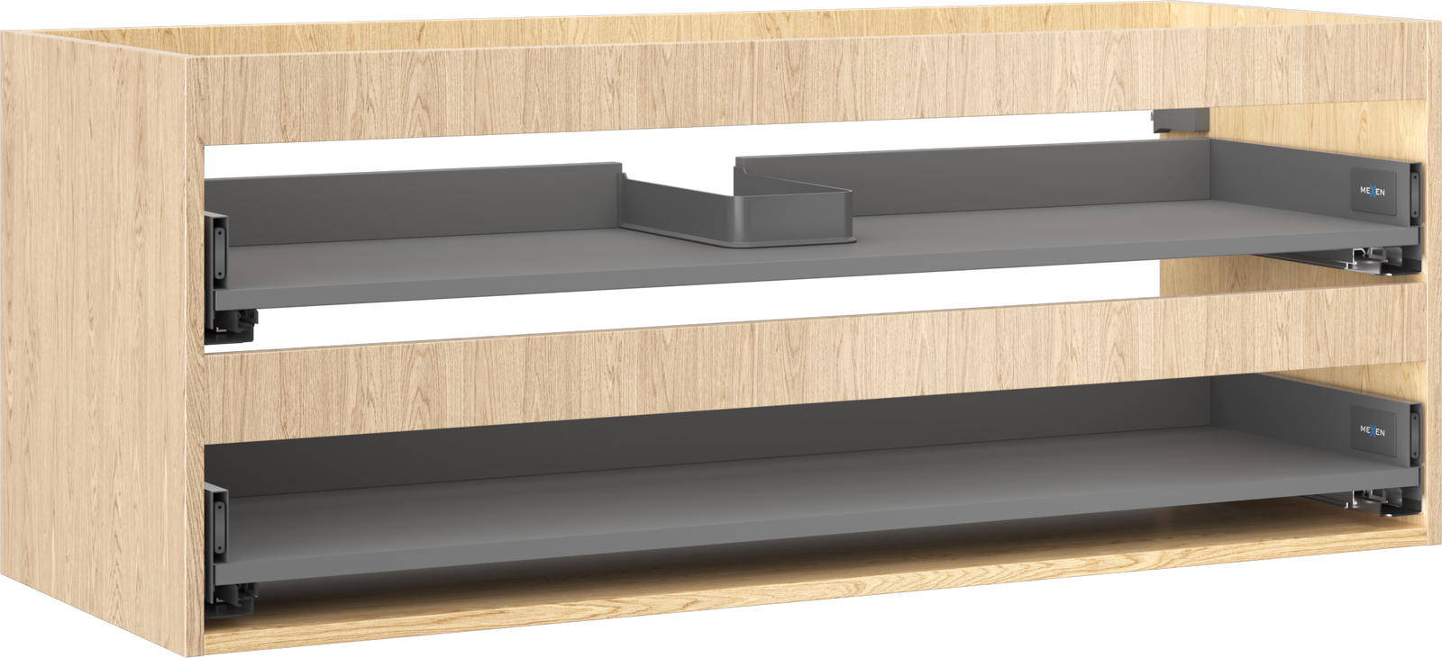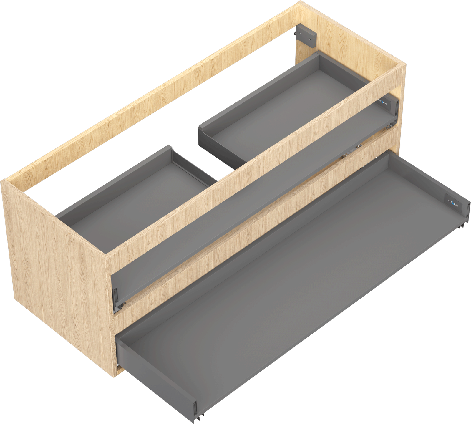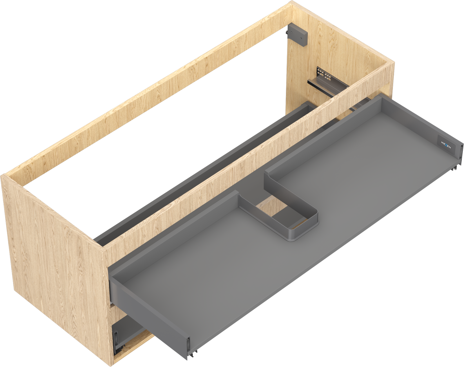 Výrez v zásuvke je navrhnutý tak, aby pojal sifón, ktorý je nevyhnutný v umývadlových inštaláciách. Vďaka tomu môže byť nábytok namontovaný plne funkčne, bez nutnosti vzdávať sa priestoru v zásuvke v prospech inštalácie.