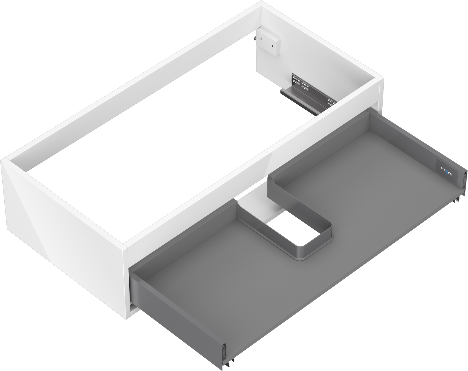 Výrez v zásuvke je navrhnutý tak, aby pojal sifón, ktorý je nevyhnutný v umývadlových inštaláciách. Vďaka tomu môže byť nábytok namontovaný plne funkčne, bez nutnosti vzdávať sa priestoru v zásuvke v prospech inštalácie.