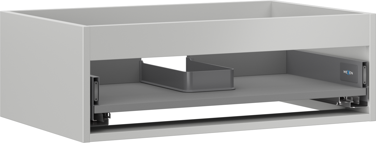 Výrez v zásuvke je navrhnutý tak, aby pojal sifón, ktorý je nevyhnutný v umývadlových inštaláciách. Vďaka tomu môže byť nábytok namontovaný plne funkčne, bez nutnosti vzdávať sa priestoru v zásuvke v prospech inštalácie.