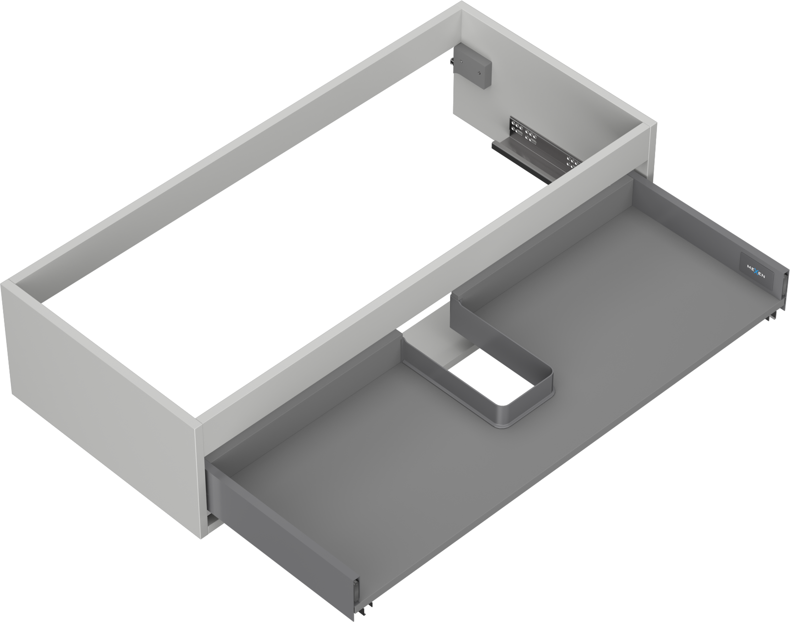 Výrez v zásuvke je navrhnutý tak, aby pojal sifón, ktorý je nevyhnutný v umývadlových inštaláciách. Vďaka tomu môže byť nábytok namontovaný plne funkčne, bez nutnosti vzdávať sa priestoru v zásuvke v prospech inštalácie.