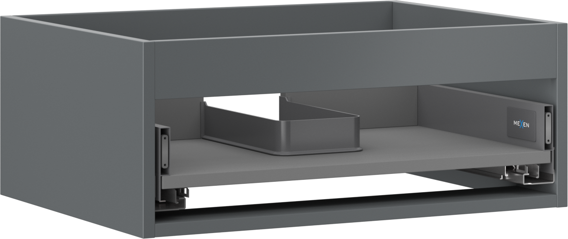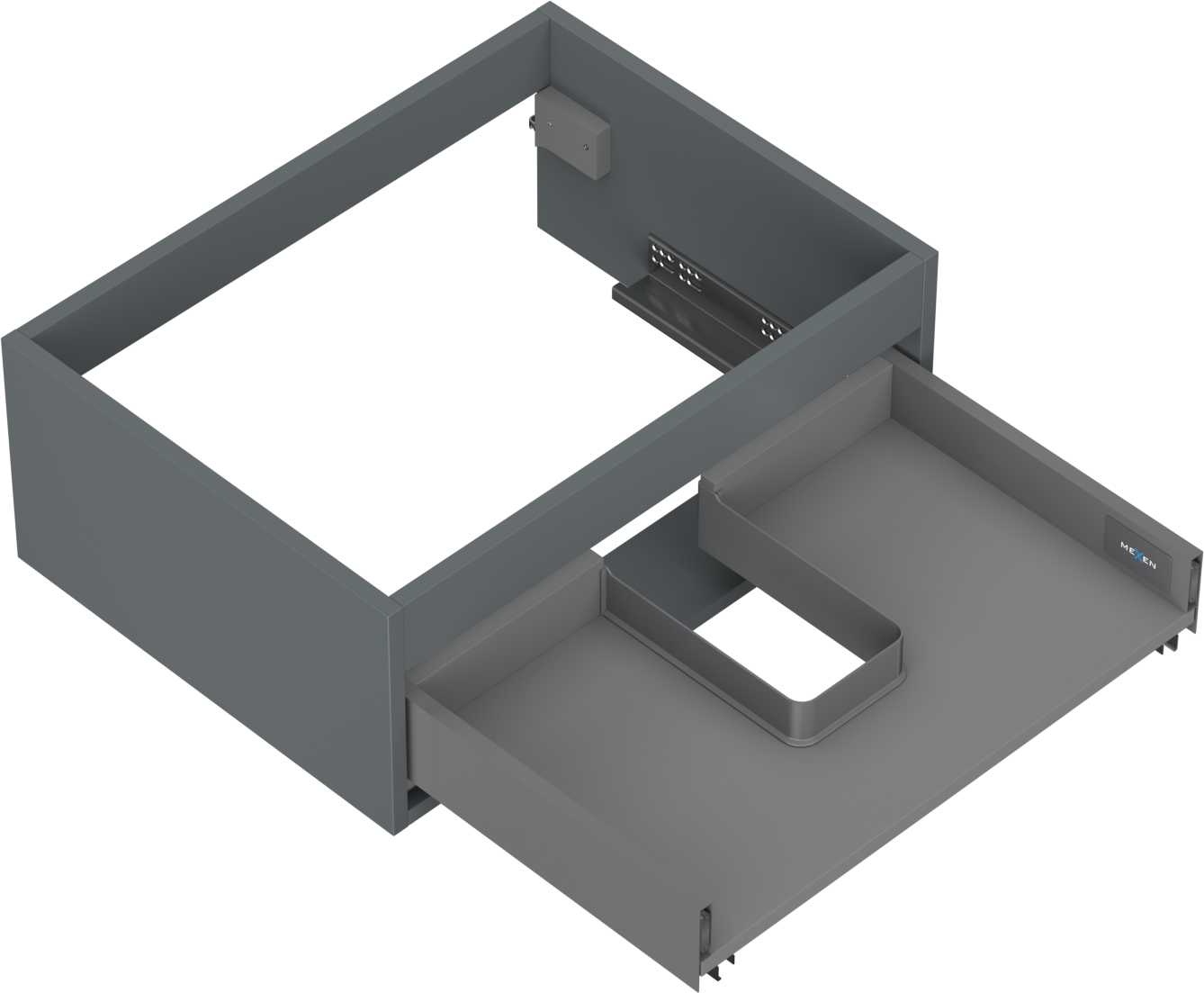 Výrez v zásuvke je navrhnutý tak, aby pojal sifón, ktorý je nevyhnutný v umývadlových inštaláciách. Vďaka tomu môže byť nábytok namontovaný plne funkčne, bez nutnosti vzdávať sa priestoru v zásuvke v prospech inštalácie.