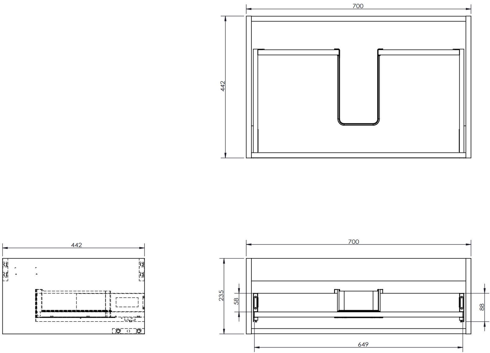 Výrez v zásuvke je navrhnutý tak, aby pojal sifón, ktorý je nevyhnutný v umývadlových inštaláciách. Vďaka tomu môže byť nábytok namontovaný plne funkčne, bez nutnosti vzdávať sa priestoru v zásuvke v prospech inštalácie.