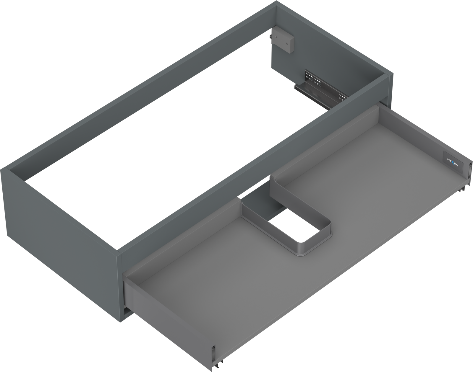 Výrez v zásuvke je navrhnutý tak, aby pojal sifón, ktorý je nevyhnutný v umývadlových inštaláciách. Vďaka tomu môže byť nábytok namontovaný plne funkčne, bez nutnosti vzdávať sa priestoru v zásuvke v prospech inštalácie.