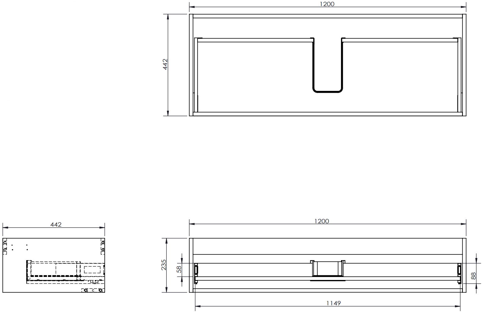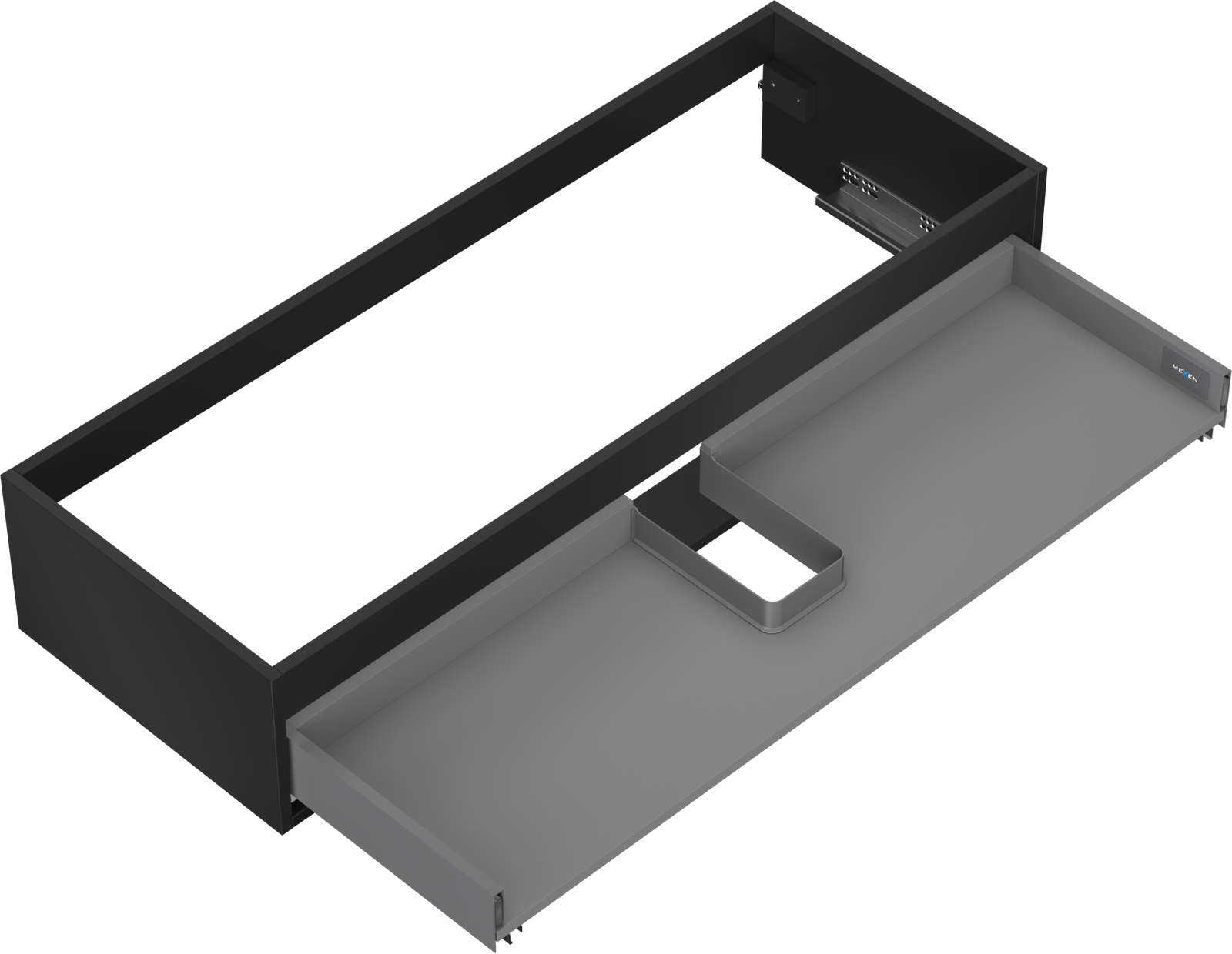 Výrez v zásuvke je navrhnutý tak, aby pojal sifón, ktorý je nevyhnutný v umývadlových inštaláciách. Vďaka tomu môže byť nábytok namontovaný plne funkčne, bez nutnosti vzdávať sa priestoru v zásuvke v prospech inštalácie.