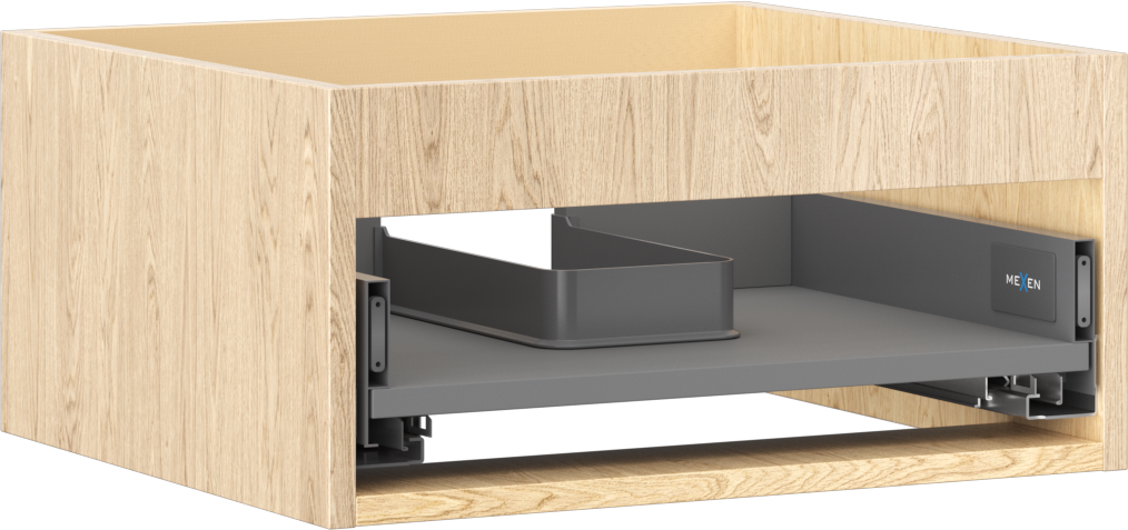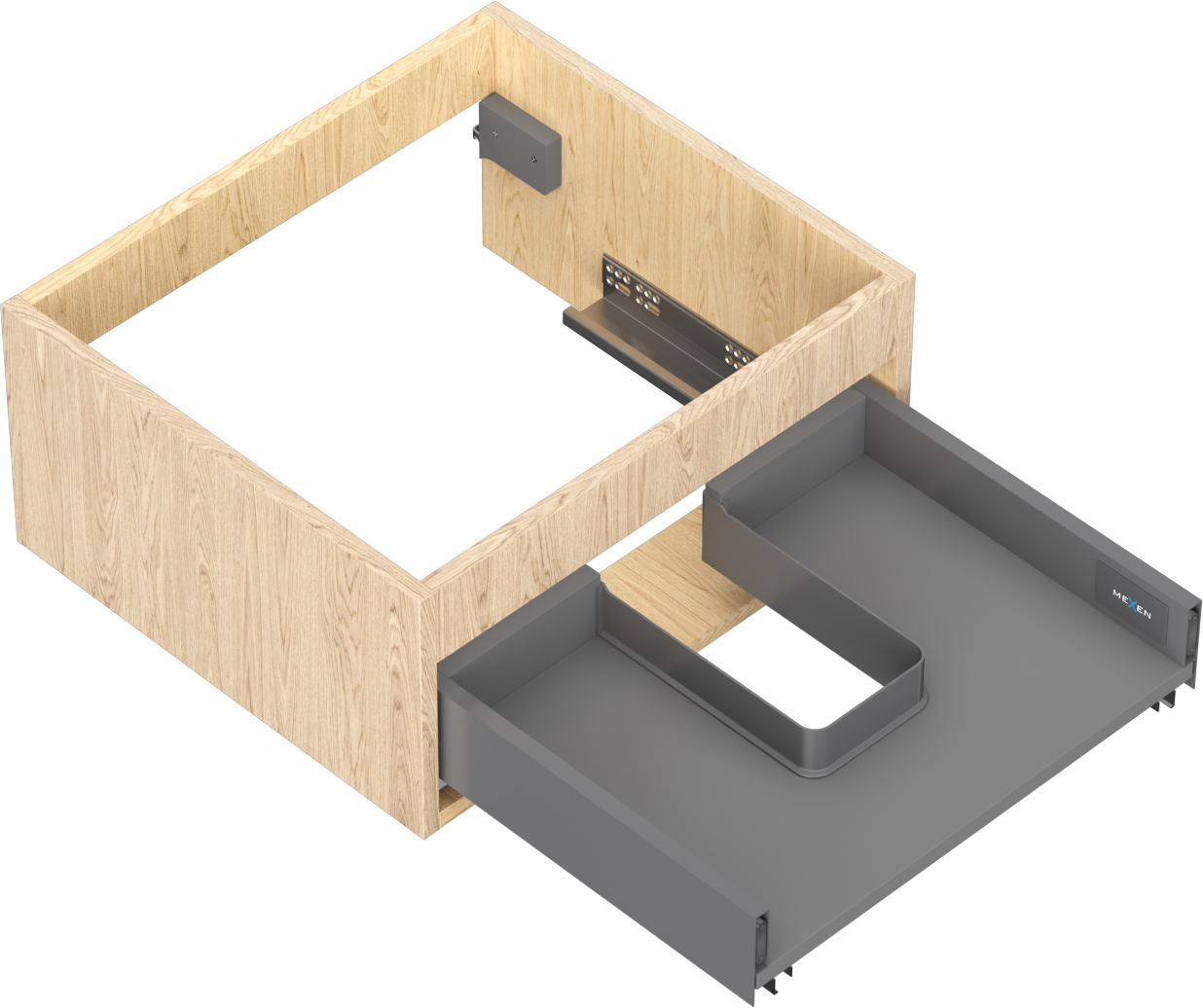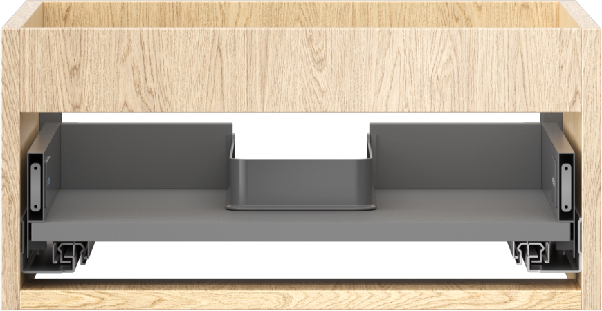 Výrez v zásuvke je navrhnutý tak, aby pojal sifón, ktorý je nevyhnutný v umývadlových inštaláciách. Vďaka tomu môže byť nábytok namontovaný plne funkčne, bez nutnosti vzdávať sa priestoru v zásuvke v prospech inštalácie.