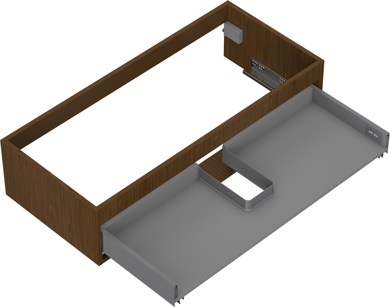 Výrez v zásuvke je navrhnutý tak, aby pojal sifón, ktorý je nevyhnutný v umývadlových inštaláciách. Vďaka tomu môže byť nábytok namontovaný plne funkčne, bez nutnosti vzdávať sa priestoru v zásuvke v prospech inštalácie.